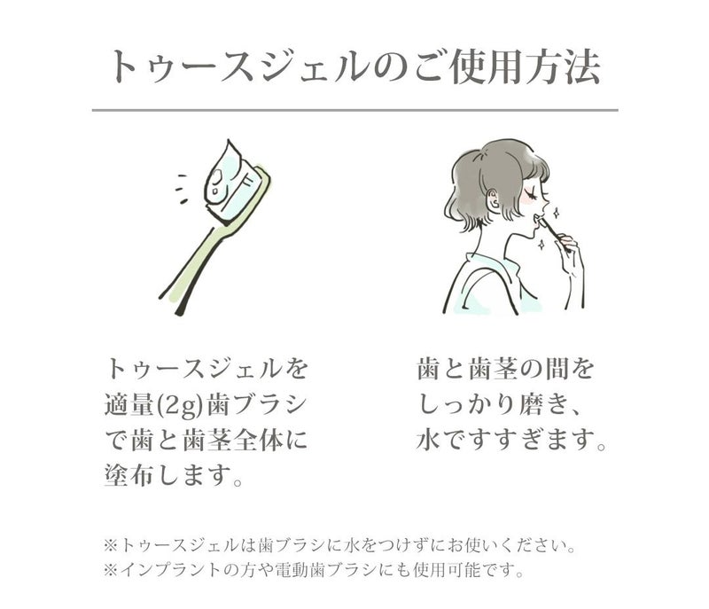 ※ウォーターベースのジェル歯磨きです。歯ブラシに水をつけずご使用ください。