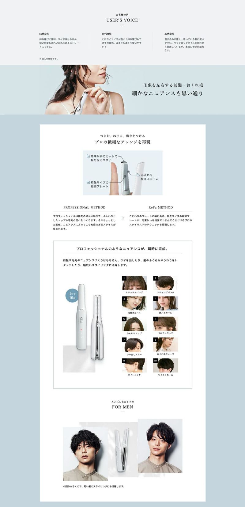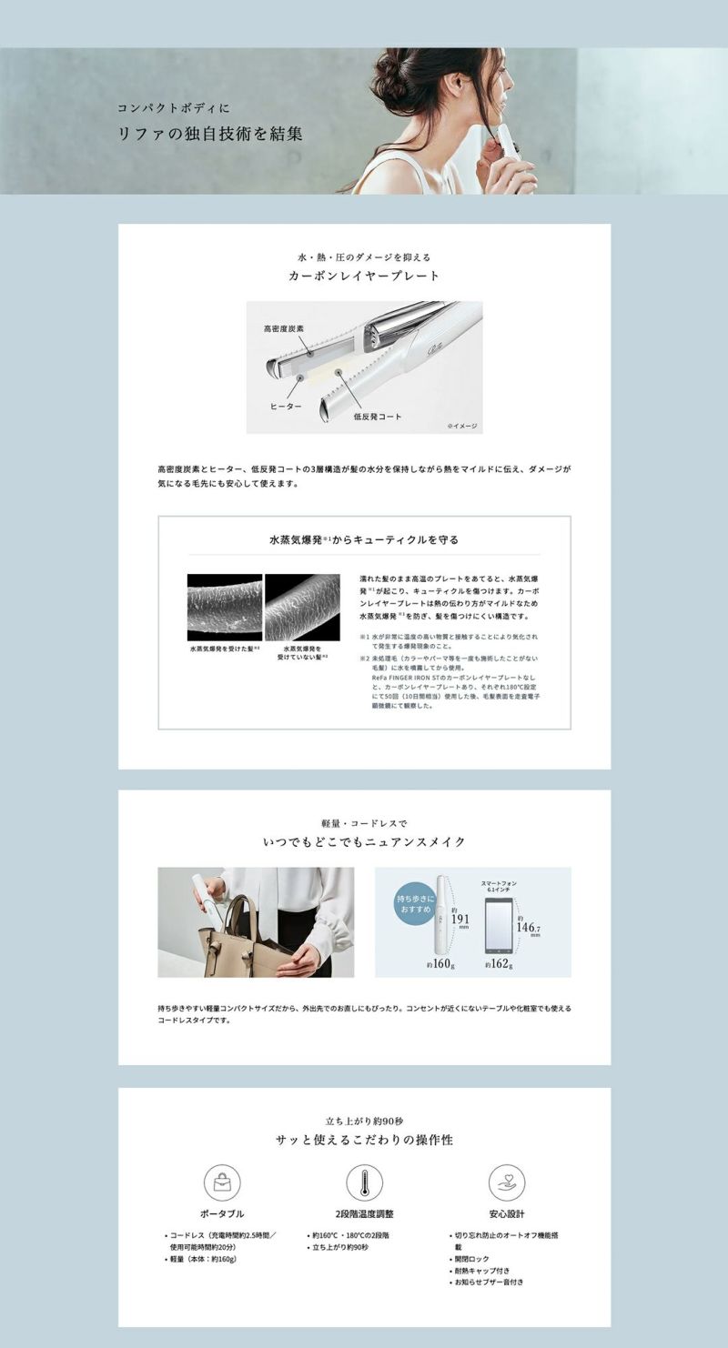 ReFa FINGER IRON ST(リファフィンガーアイロン ST)が、誰でも簡単・キレイ・ダメージレスで仕上がる独自のテクノロジーとメソッドで、こなれ感と小顔を叶えます。