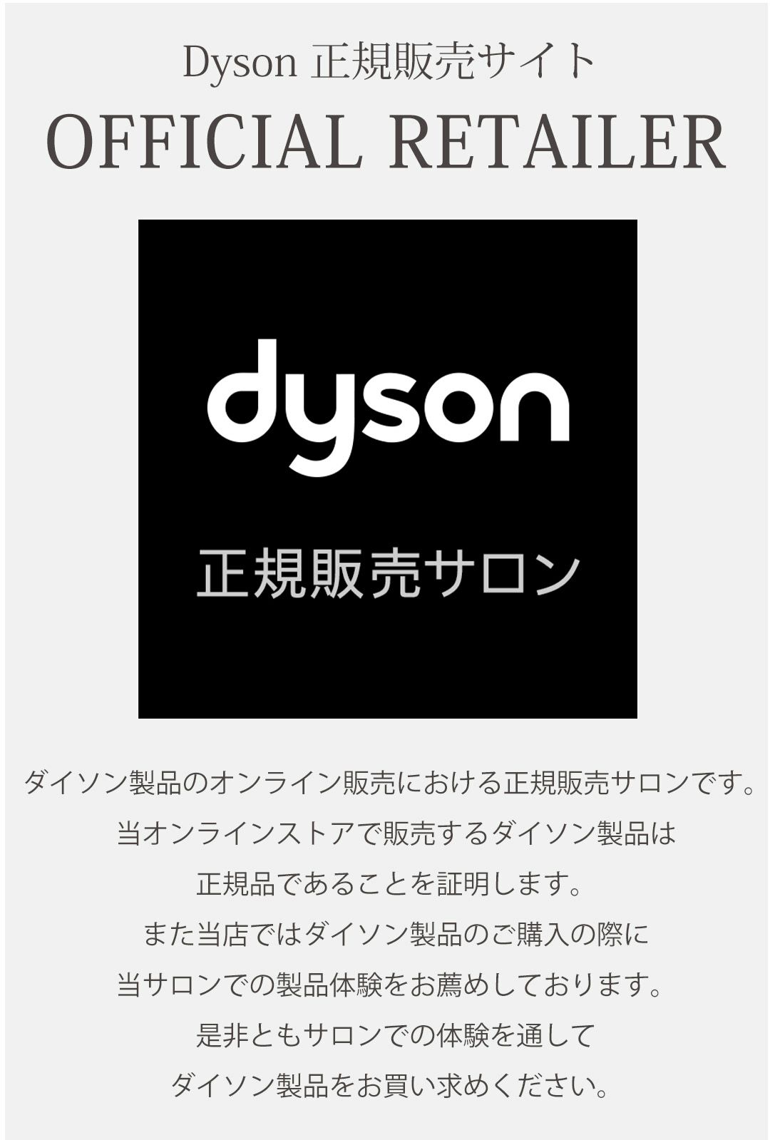 ダイソン製品に関する技術的なご質問・初期不良・修理等につきましては「ダイソンお客様相談室」へお問い合わせください。
