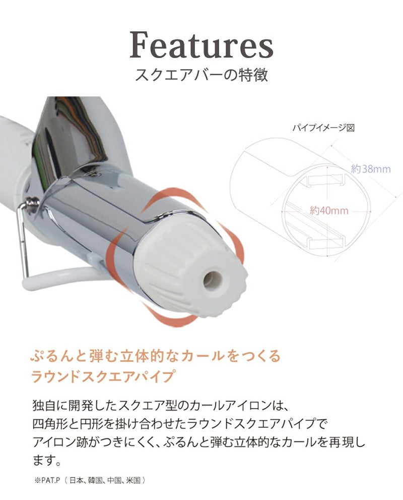 K-POPアイドルや俳優たちのヘアメイクの現場で大きなカールが簡単に作れ、また驚くほど長持ちするとその機能性が話題となったのが四角いパイプのカールアイロン 「スクエアバー40mm」。 トレンドの「韓国ヘア」「ヨシン(女神)ヘア」に欠かせないスタイリングツールが日本初上陸。