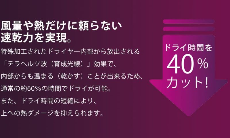 速乾で髪にダメージを与えない!BLDCモーターとテラヘルツ波でドライ時間40%削減