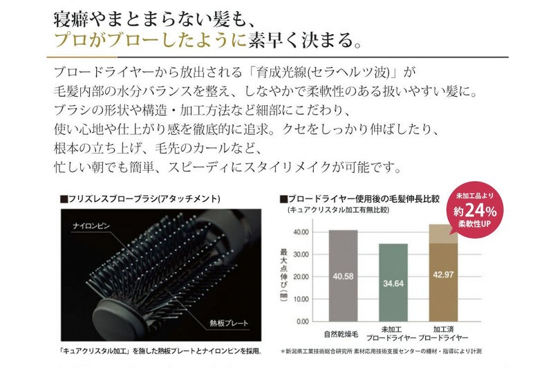 プレミアムクレイツイオン加工された特殊なブラシでプロのブローテクニックを再現。