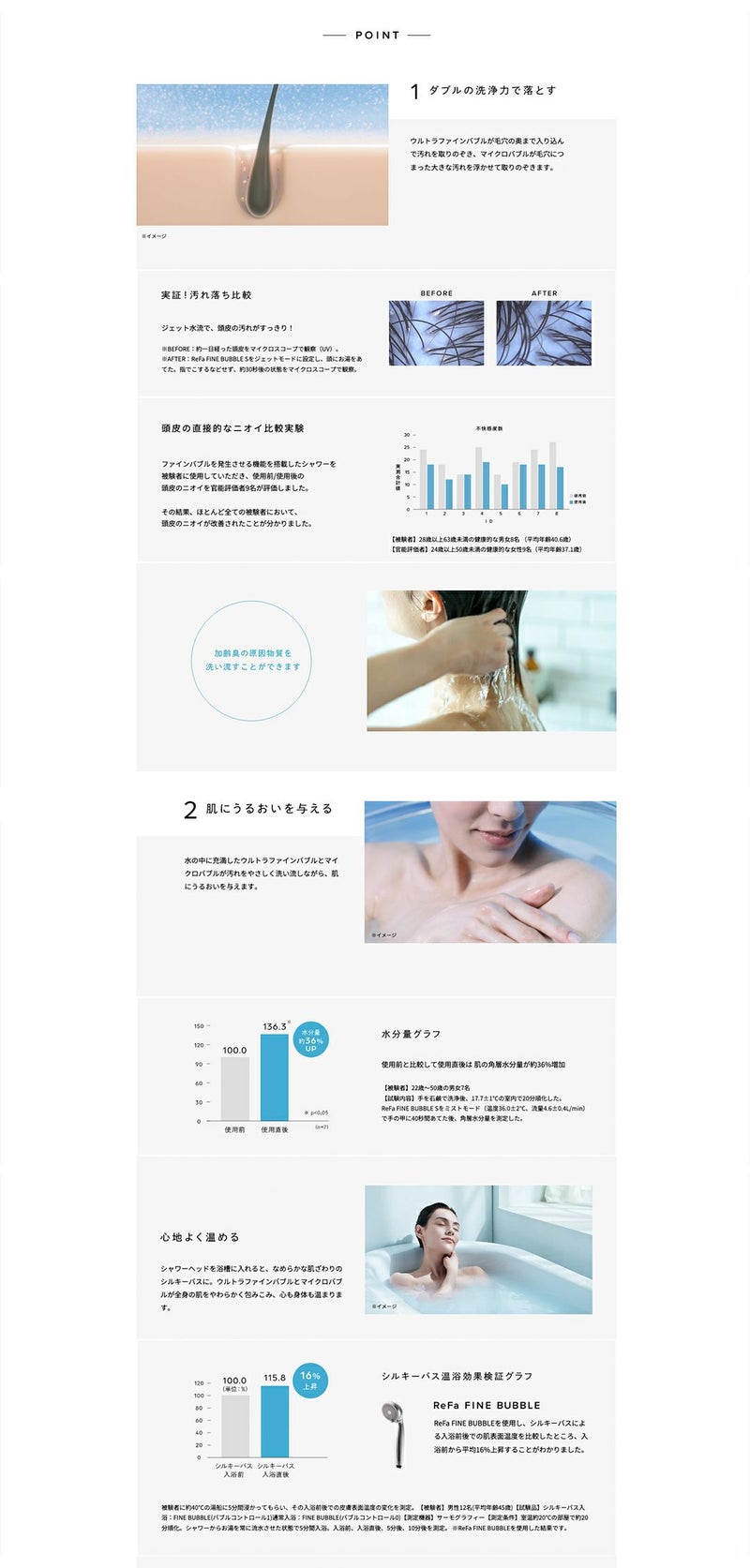 その水と肌の関係に着目したReFaから、肌を美しくする2つの泡、ウルトラファインバブルとマイクロバブルを驚異的に発生させる独自のテクノロジーを搭載したシャワーヘッドが誕生しました。