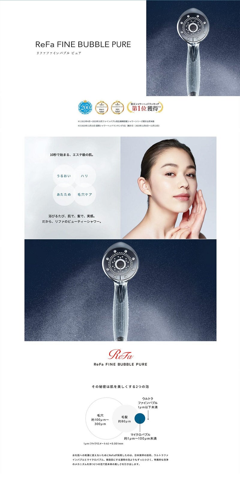 毎日浴びる水には、こだわりたい。 バスタイム中にふれつづける水に着目したReFaから、敏感な肌のことを考え抜いたシャワーヘッド、ReFa FINE BUBBLE PURE(リファファインバブル ピュア)が誕生しました。