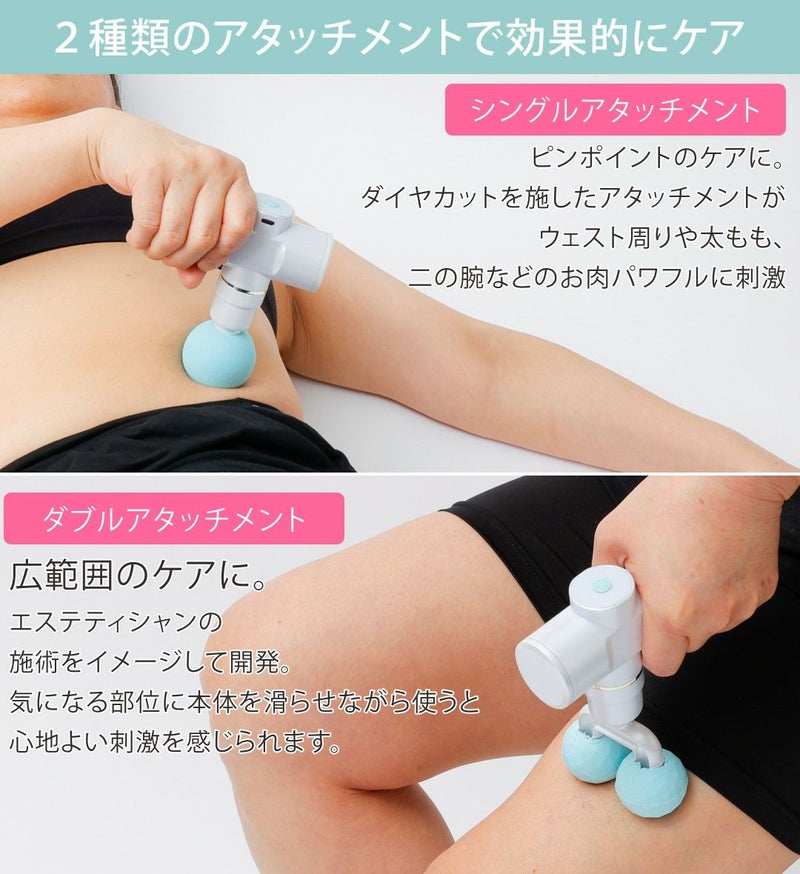 付属品:シングルアタッチメント、ダブルアタッチメント、充電用ケーブル、電源アダプター、取扱説明書(保証書付)