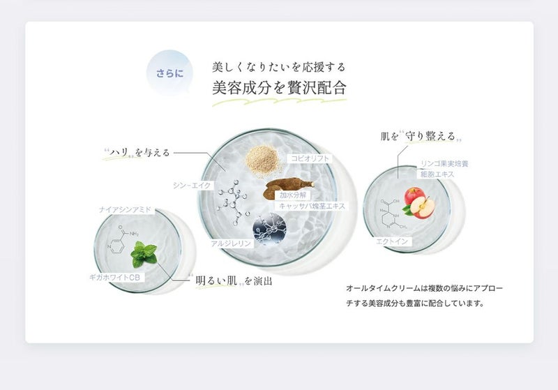 肌のトラブルではなく、肌そのものにアプローチすることで年齢や肌質問わず、朝・昼・晩いつでもお使いいただけます。