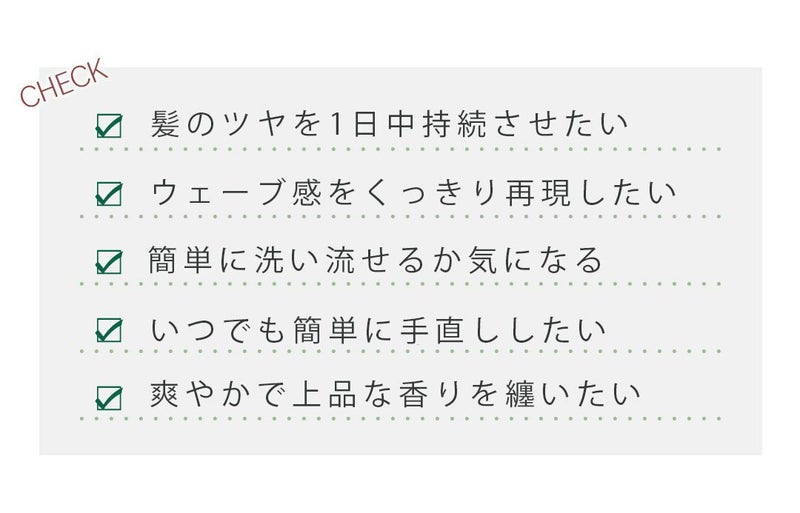 ウェーブ感をくっきりと再現しながら、一日中艶感をキープ。