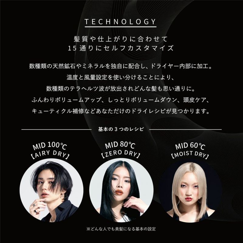 さらに一人一人の髪質に合わせ、風量や温度を15通りにカスタマイズができ「なりたいスタイル」を叶えます。