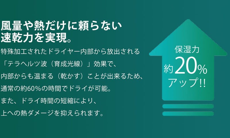水分を閉じ込めながら髪を乾かせる!テラヘルツ波で保水力20%UP