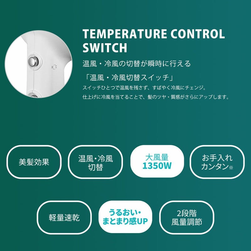 一般的なイオン未加工ドライヤーに比べると保湿力を20%アップさせることができます。水分を髪に閉じ込めながら髪を乾かせる保湿ツヤ髪ドライヤーです。